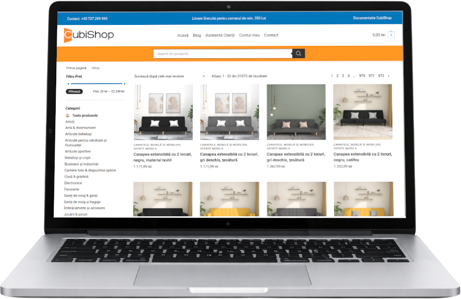 CubiShop include toate elementele esențiale și funcționalitățile necesare pentru dezvoltarea și administrarea unui magazin online profesional, complet optimizat pentru vânzări: